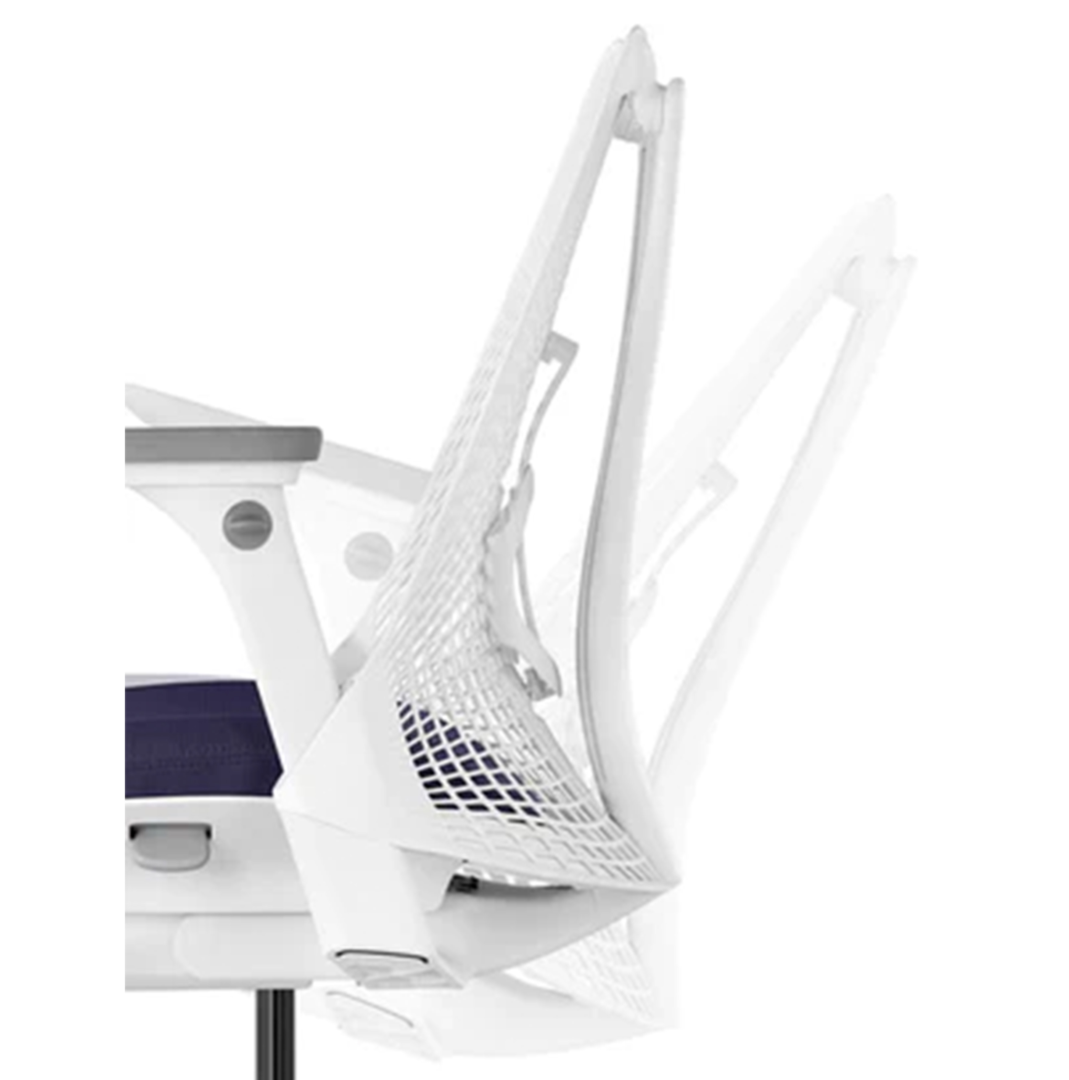 セイルチェアのフレームのない背もたれとYタワーサスペンションは、目を惹く美しいデザインの中にデザイナーのインスピレーションと意図とを体現しています。